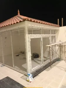 - العزل المائي والحراري: نظراً لتعرض الملحق المباشر للشمس والأمطار، العزل هو أهم خطوة لضمان برودة المكان صيفاً وجفافه شتاءً.