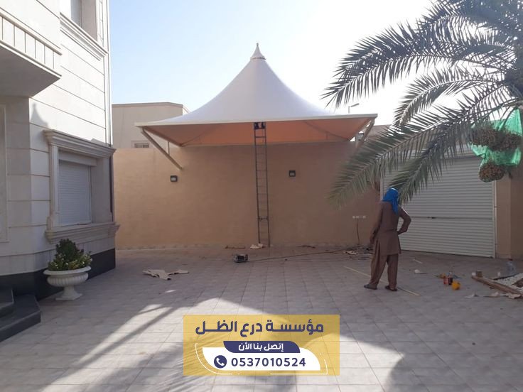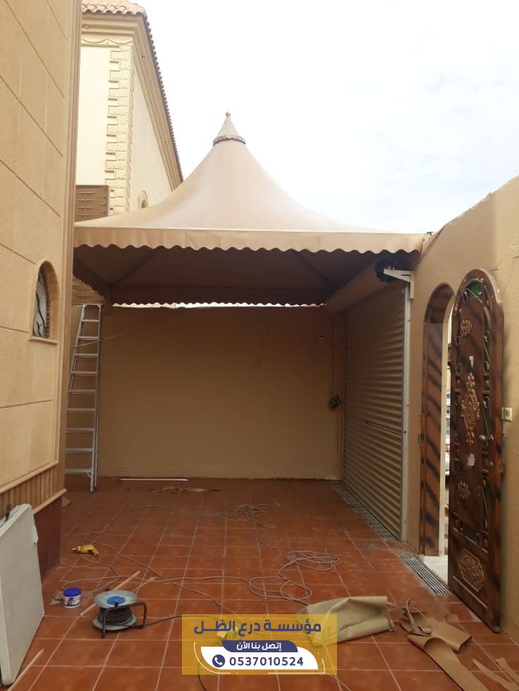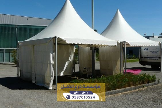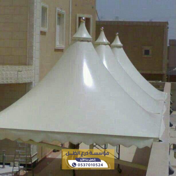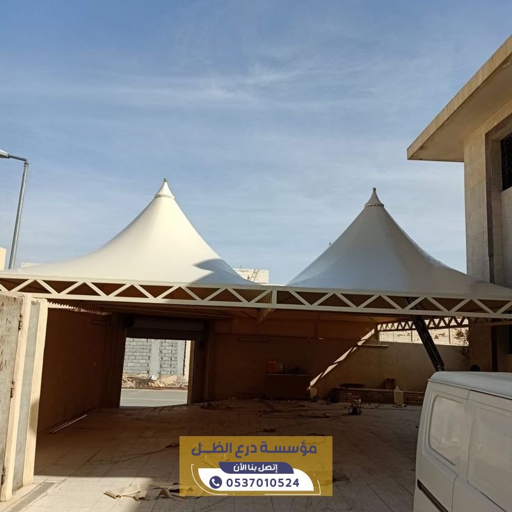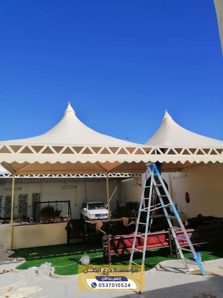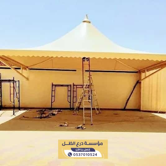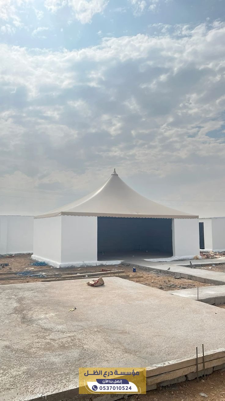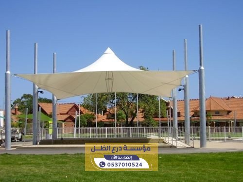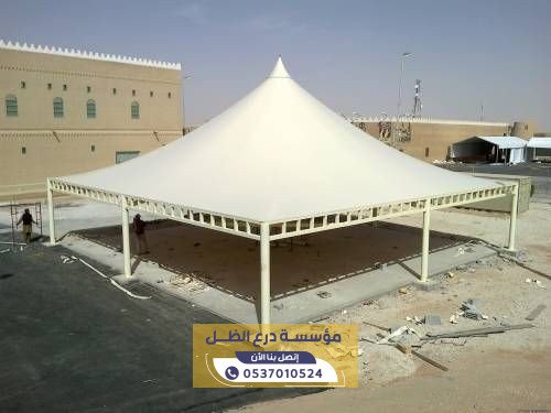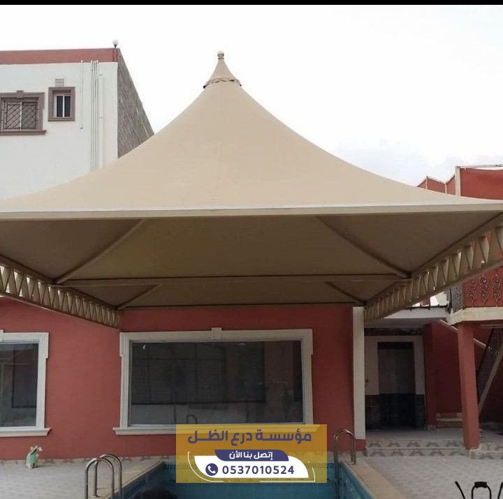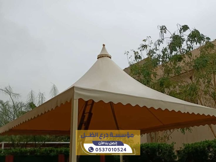 تصنع المظلات الهرمية من مواد قوية تتحمل الشمس والرياح وتُنفذ وفق معايير دقيقة لضمان ثبات طويل وعمر افتراضي ممتد.