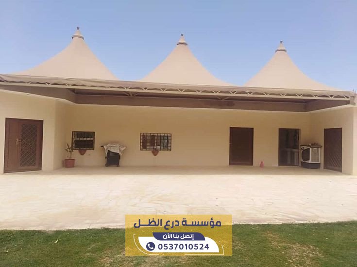توفر المظلات الهرمية ظلًا واسعًا وتقلل من حرارة المكان بشكل كبير مما يجعلها خيارًا مثاليًا للأجواء الحارة في المملكة.